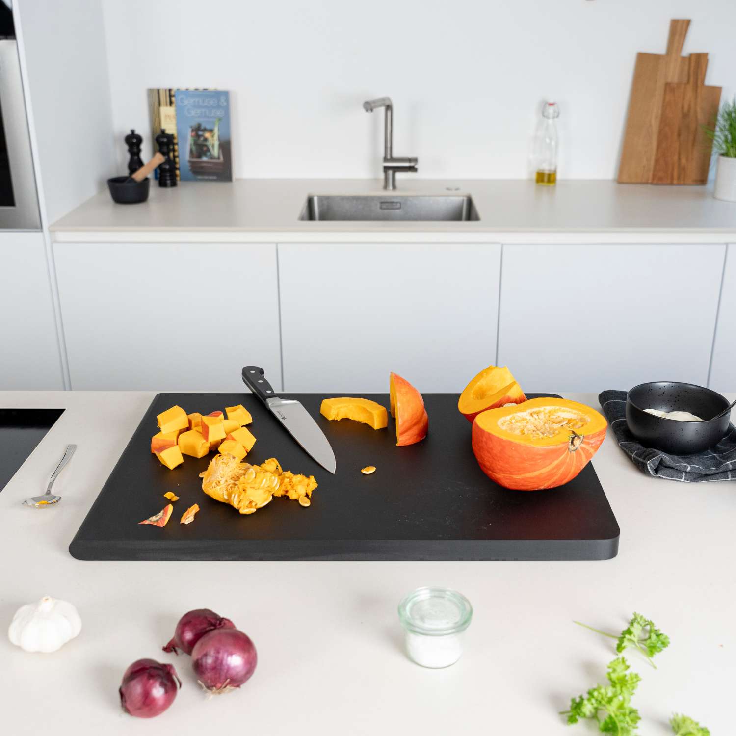 Αυτές οι καλαίσθητες βάσεις κοπήες τυριών Duracore – κατασκευασμένες κατά 80% από ανακυκλωμένα υλικά – συνδυάζουν ανθεκτικότητα και πρακτικότητα. Είναι ιδιαίτερα ανθεκτικές στη χρήση, αντέχουν σε θερμοκρασίες έως 180°C, μπαίνουν άνετα στο πλυντήριο πιάτων και είναι ιδανικές για αποθήκευση στο ψυγείο. Ταυτόχρονα, προστατεύουν τις λεπίδες των μαχαιριών και προσφέρουν υψηλό επίπεδο υγιεινής.