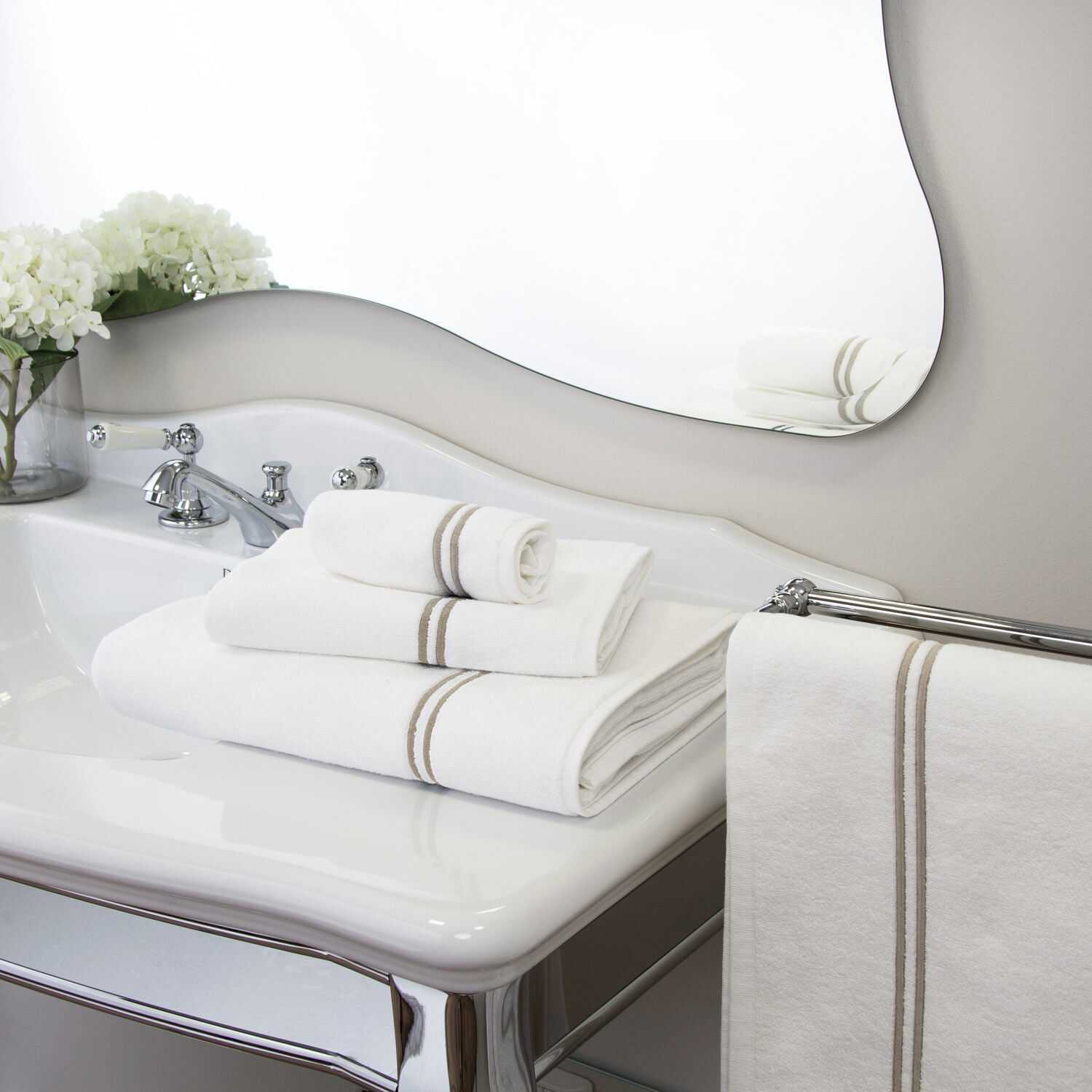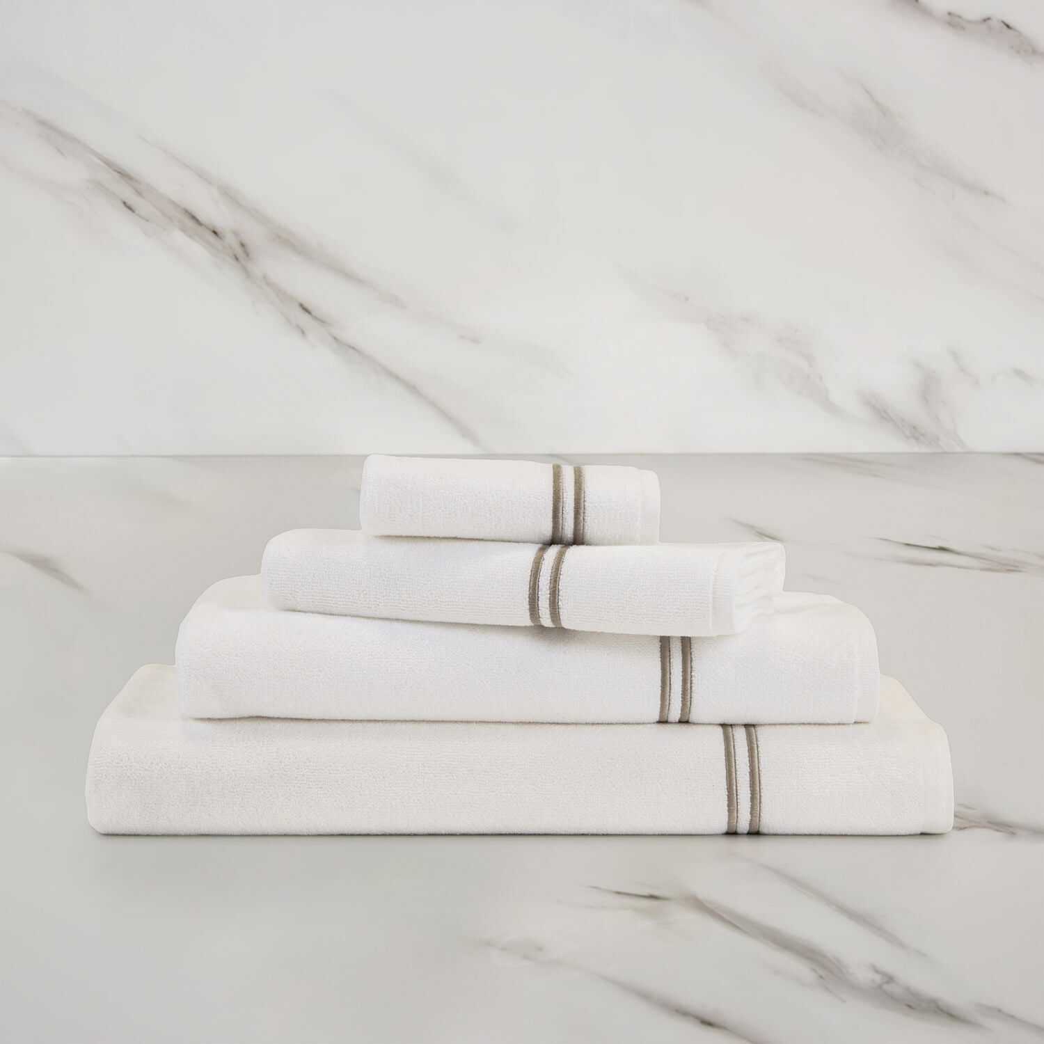 Frette Πετσέτα προσώπου 76Χ147εκ. χρώμα λευκό/2 χακί ρίγες, 100% βαμβάκι, 550gsm σειρά Hotel Classic