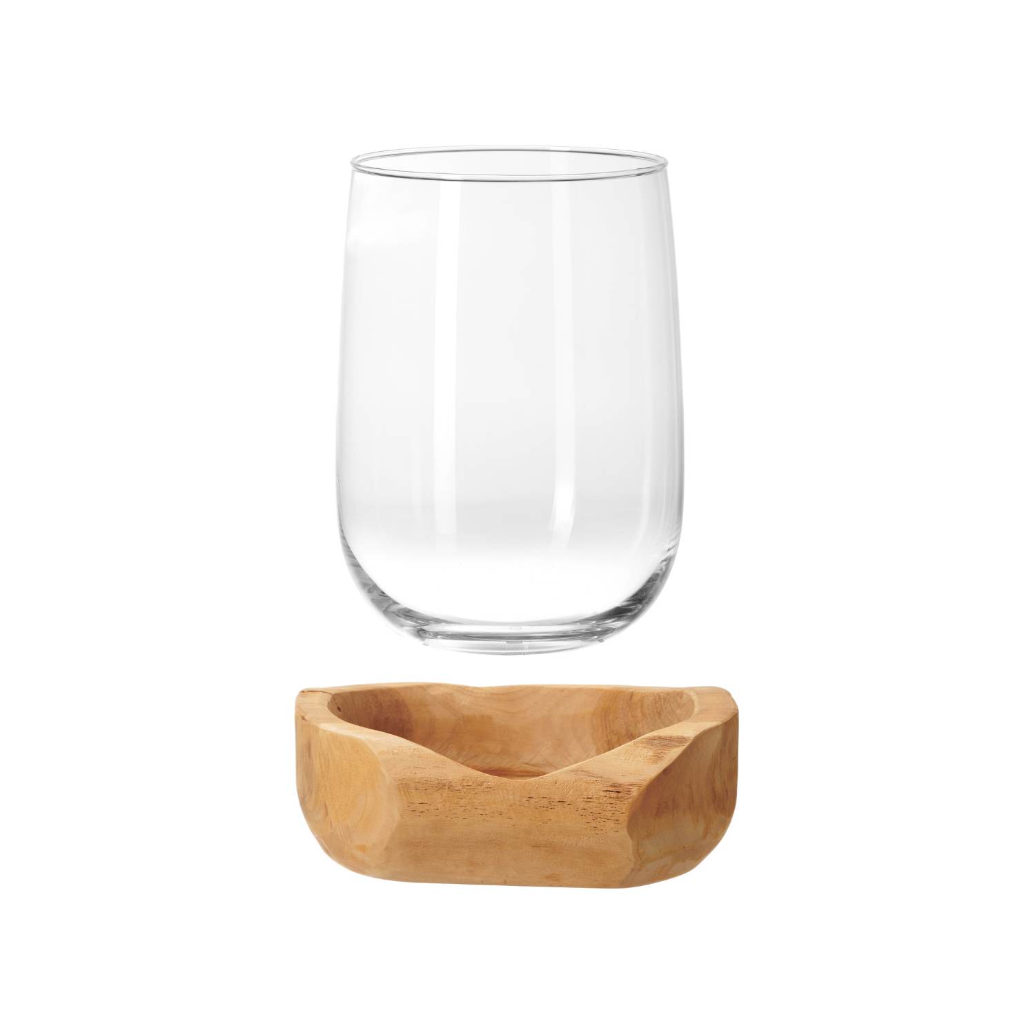 Leonardo Βάζο/Κηροπήγιο-λάμπα 27 εκ με ξύλινη βάση teak σειρά Terra