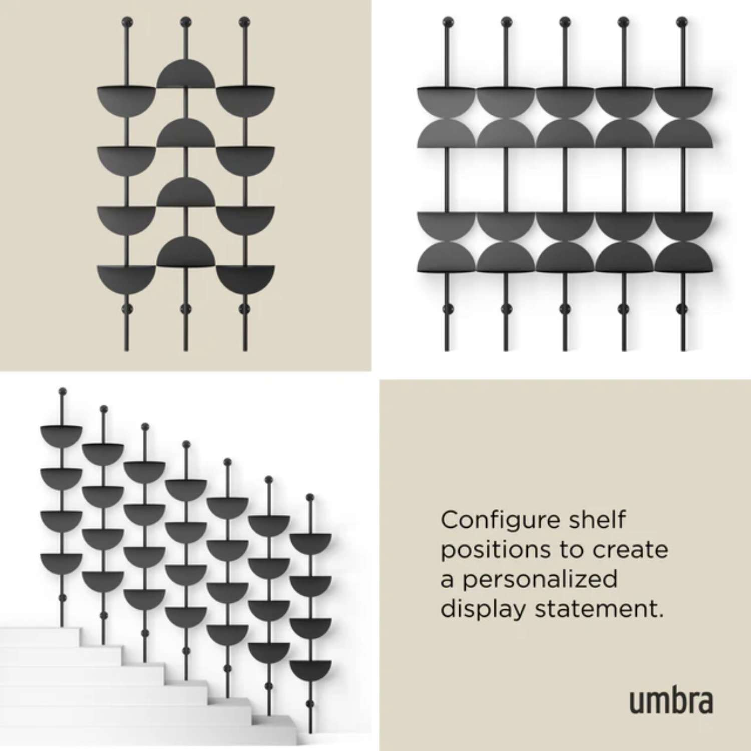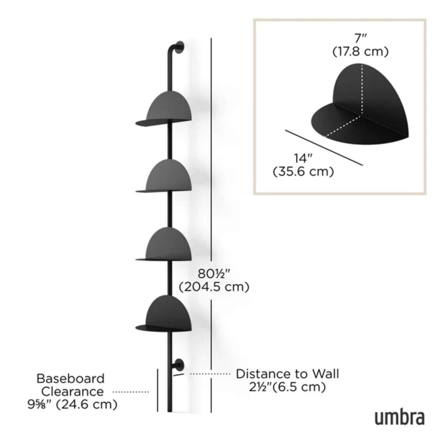 Umbra Ραφιέρα μεταλική 4 θέσεων μαύρη 34,9x26,7x203,8cm σειρά Solis