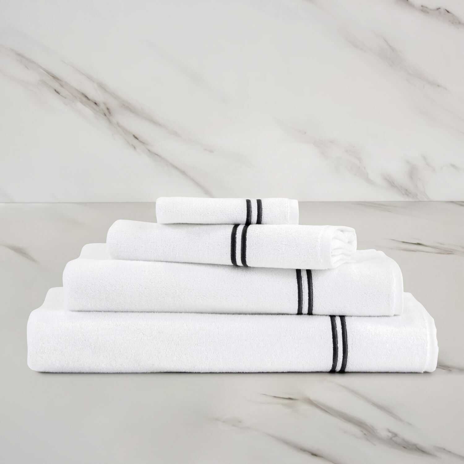 Frette Πετσέτα προσώπου 76Χ147εκ. χρώμα λευκό/2 γκρι ρίγες, 100% βαμβάκι, 550gsm σειρά Hotel Classic