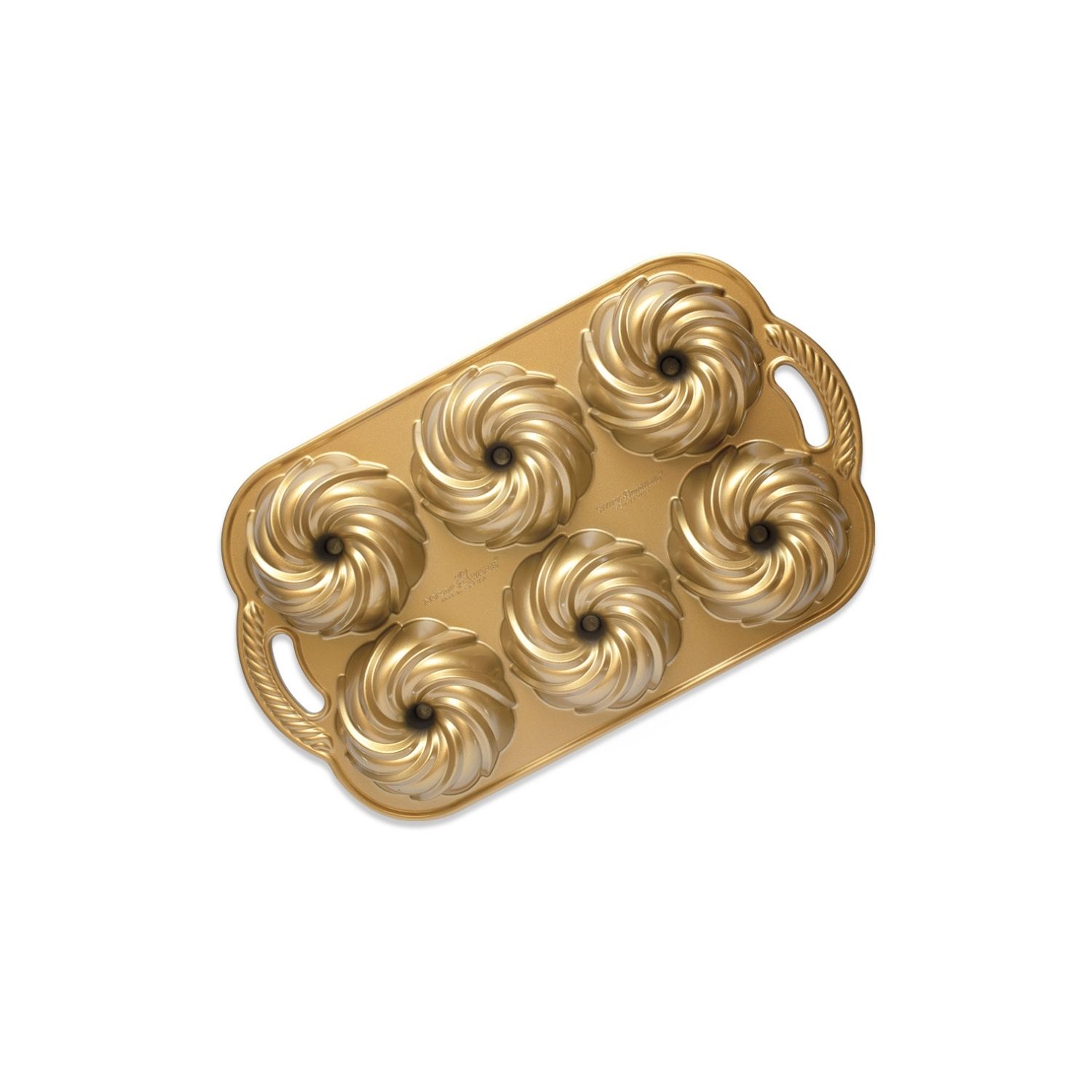 Nordic Ware Φόρμα για 6 μικρά κέικ με τρύπα σε στριφτό σχήμα 38x20,6x4,6εκ. σειρά Premier Gold
