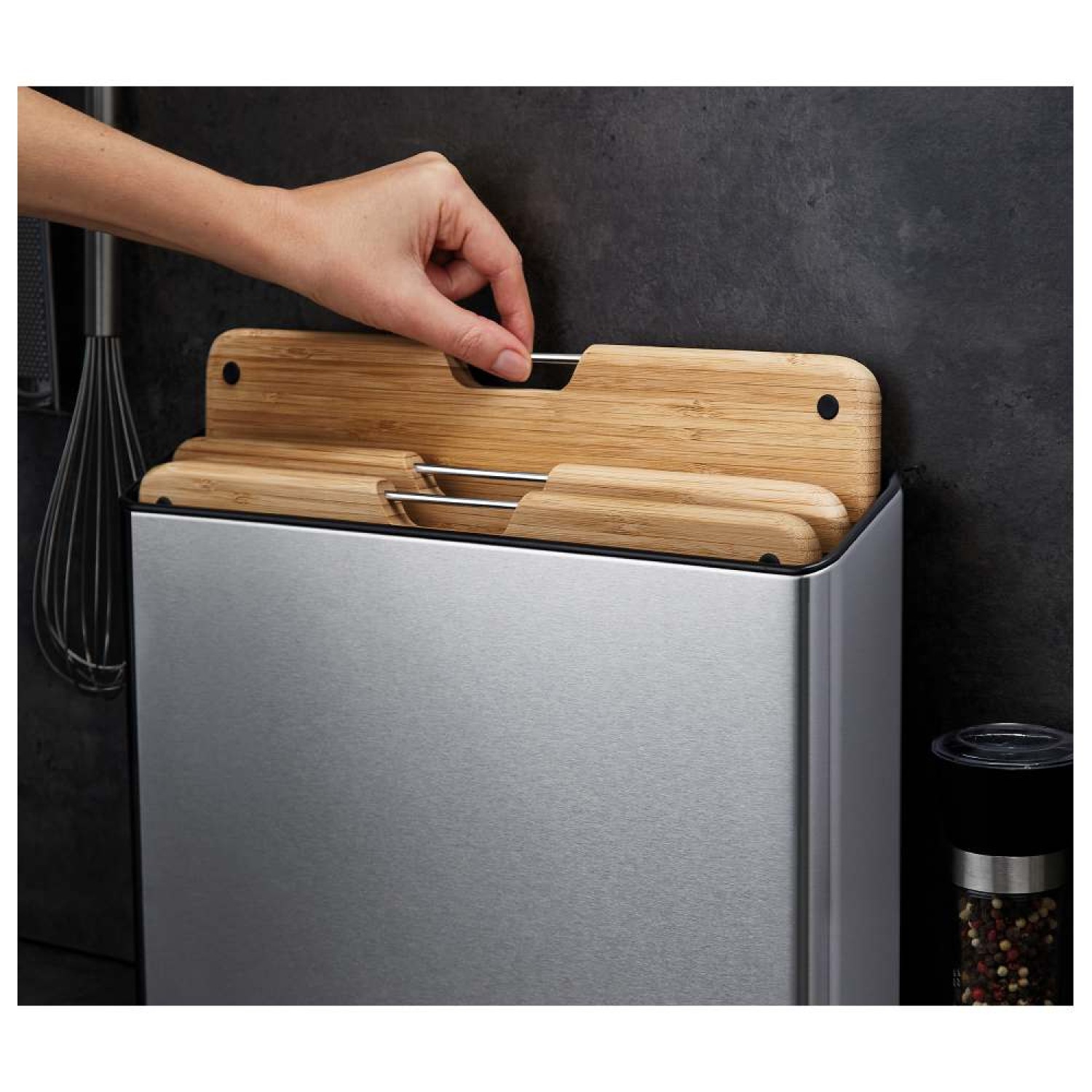 Για άριστες συνθήκες υγιεινής έχει ιδιαίτερη σημασία η βάση κοπής. Με τις 4 διαφορετικές βάσεις κόβετε τις τροφές ξεχωριστά αποφεύγοντας κάθε πιθανό κίνδυνο από τη μεταφορά μυρωδιάς, γεύσης, ουσιών… Πλένονται στο πλυντήριο πιάτων και αποθηκεύονται στη βάση τους για να είναι πάντα η κουζίνα σας σε τάξη.
