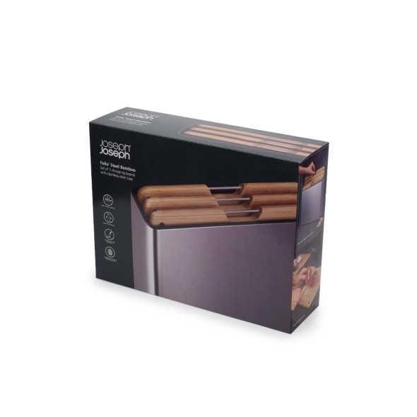 Joseph Joseph Βάσεις κοπής σετ 4τεμ. ασημί/Bamboo σειρά Folio Steel