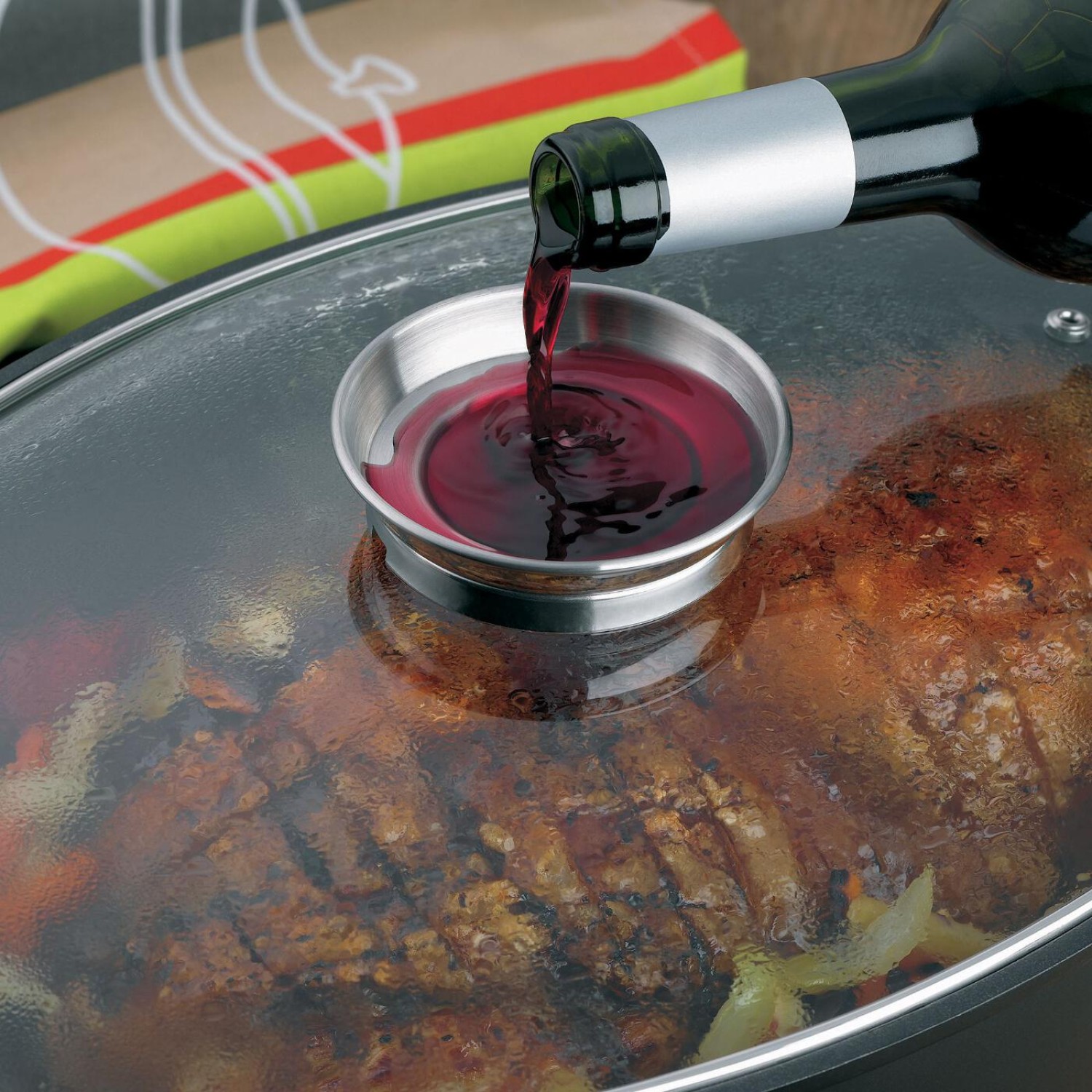 - Ειδική υποδοχή στο καπάκι για να προσθέτετε υγρό (κρασί, λάδι, νερό) – ευκολία και άνεση