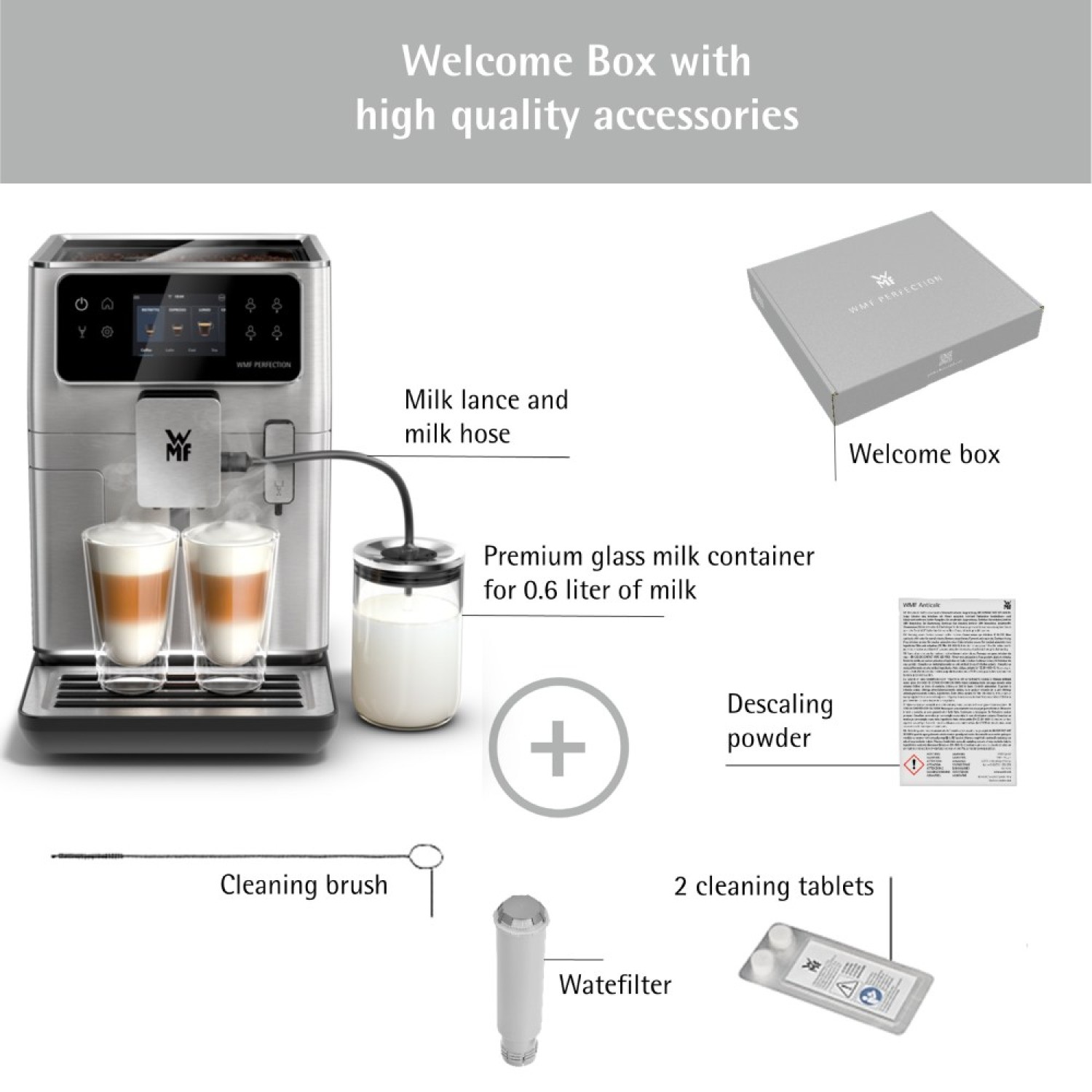 Οι αυτόματες καφετιέρες Perfection της WMF αγγίζουν την τελειότητα σε ό,τι αφορά το design και την λειτουργικότητα! Ετοιμάζουν τον αγαπημένο σας καφέ, όπως ακριβώς τον θέλετε, κάθε φορά. Έχουν έως και 16 διαφορετικά προκαθορισμένα προγράμματα για καφέ και τσάι. Τα προγράμματα εξατομικεύονται και αποθηκεύονται, σύμφωνα με τις δικές σας προτιμήσεις. Μπορείτε να δημιουργήσετε μέχρι και 16 προφίλ χρησιμοποιώντας την εύχρηστη οθόνη αφής.